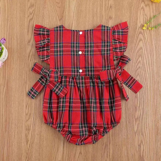 Christmas Baby Girl Christmas Romper Plaid Dress and Headband